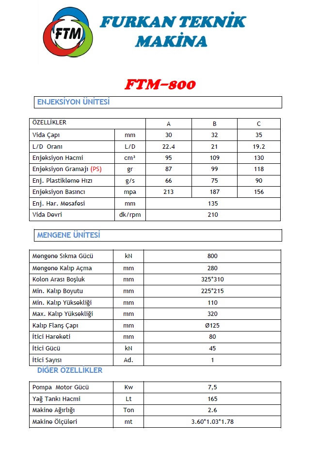 FTM-80 Ton Plastik Enjeksiyon Makinası
