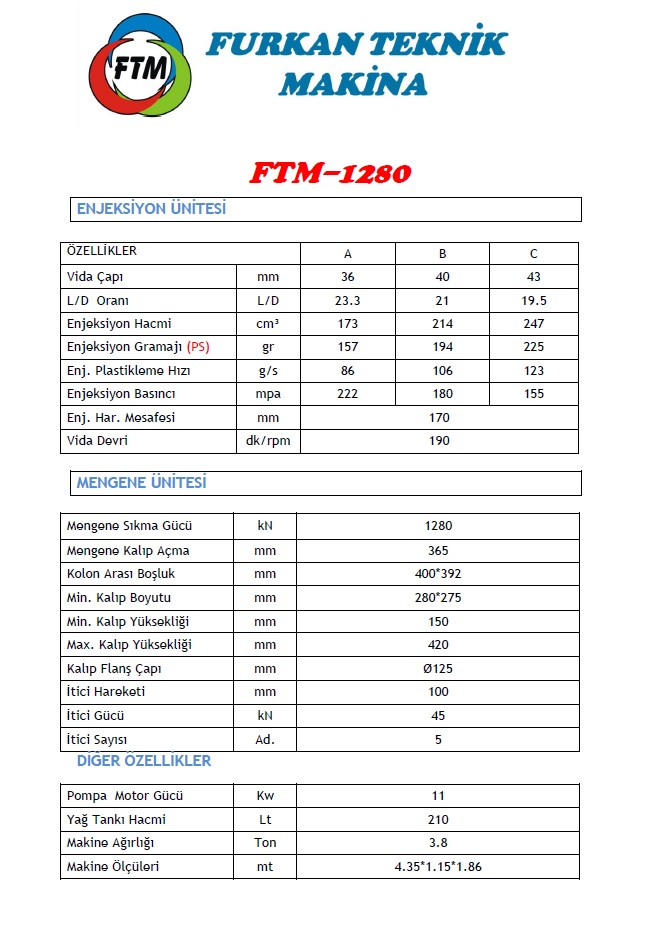 FTM-128 Ton Plastik Enjeksiyon Makinası