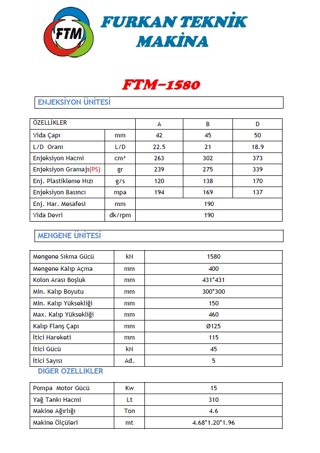 FTM-158 Ton Plastik Enjeksiyon Makinası