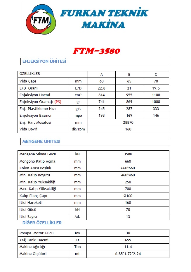 FTM-358 Ton Plastik Enjeksiyon Makinası