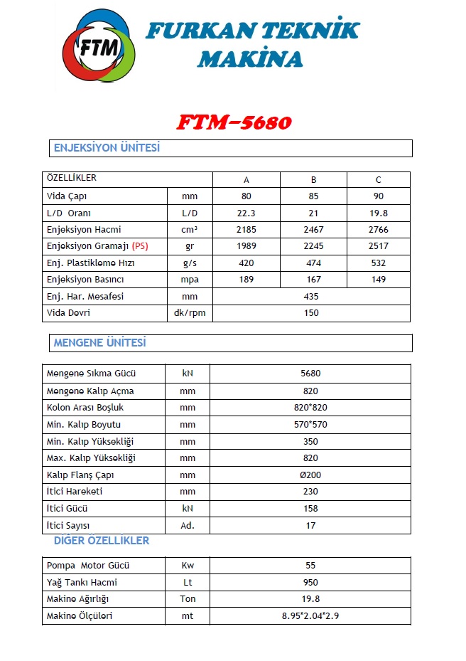 FTM-568 Ton Plastik Enjeksiyon Makinası