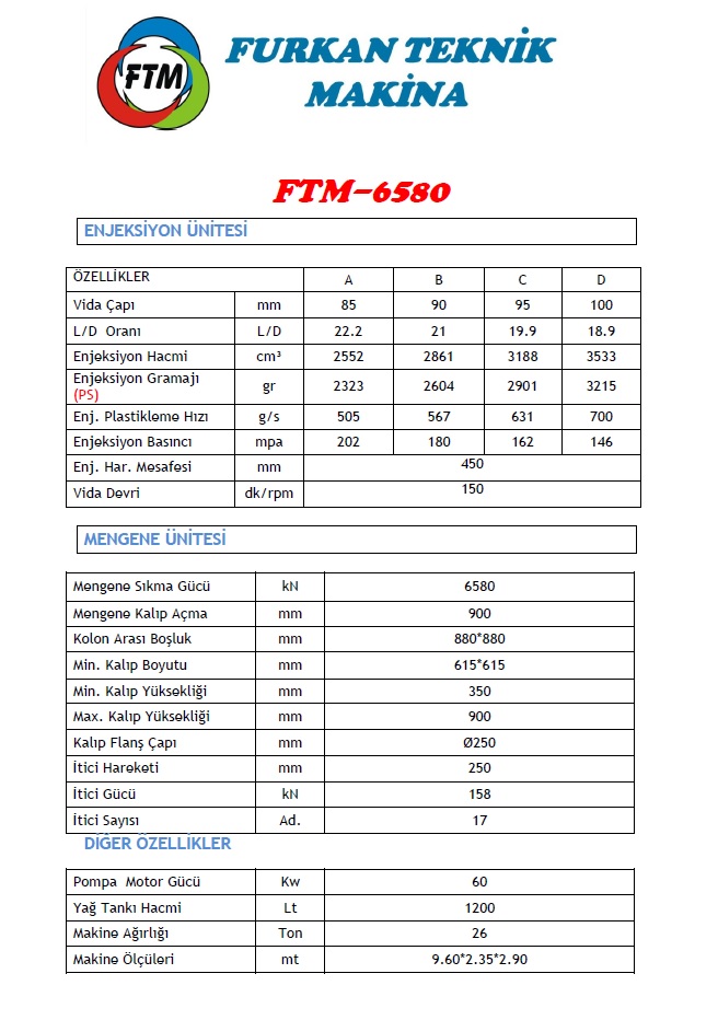 FTM-6580 Ton Plastik Enjeksiyon Makinası